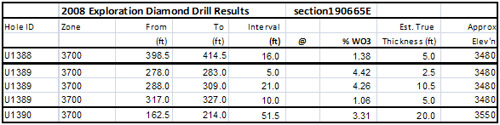 The Cantung exploration and delineation drill program has completed an additional 6000ft of drilling below the 3700 level. The aim of the Q3/08 drill program is to further define the high grade tungsten zone for inclusion in an updated NI43-101 resource estimate and mine plan. This zone still remains open to the west, east and down plunge. Drilling will continue in this area.