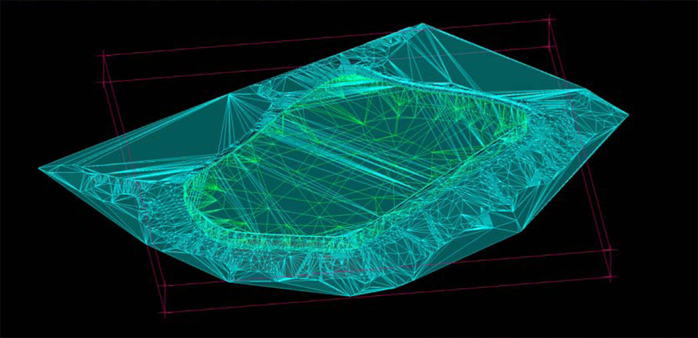 A sonic drill program throughout the summer of 2011 and spring of 2012 was conducted to explore the possibility of reprocessing unrecovered WO3, Cu and Au from Tailings Pond 3. The program was designed to establish the approximate tonnage and grade of the available tailings which were then compared to historical production statistics. A total of 25 holes were drilled with a spacing of approximately 200 feet depending on ground conditions. Tailings samples were acquired at 5 foot intervals over the entire length of each hole and assayed at ACME Laboratories, Vancouver. In-house assay work along with preliminary metallurgical work was also conducted on site. A preliminary block model was constructed using Minesight software (Figure 1).